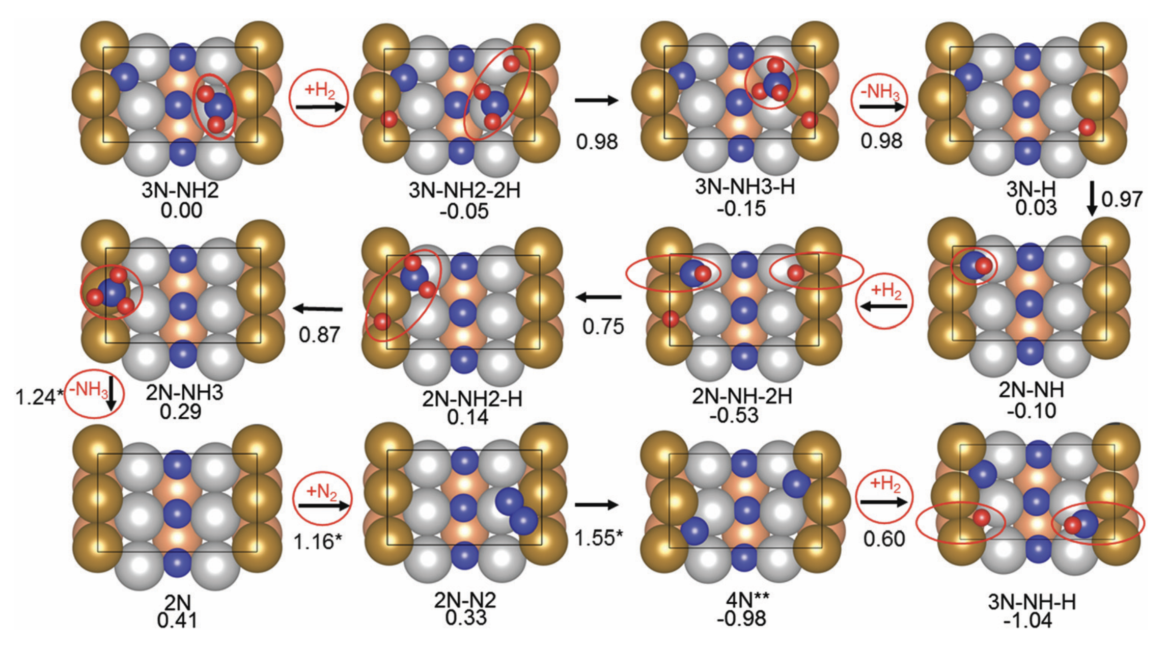 [1] Reaction mechanism and kinetics for ammonia synthesis on the Fe(211) reconstructed surface. Jon Fuller, Alessandro Fortunelli, William A. Goddard III, and Qi An. Physical Chemistry Chemical Physics Issue 21, 2019